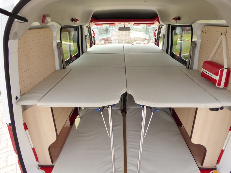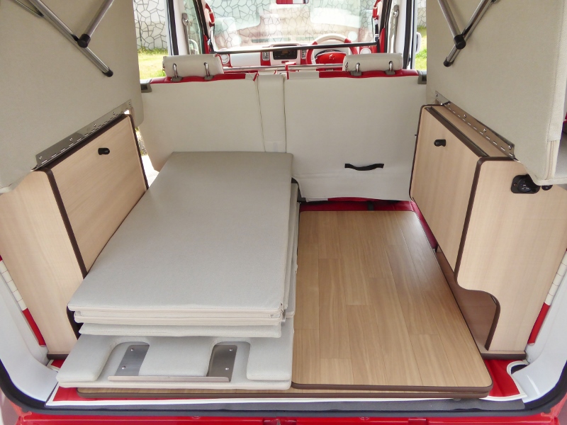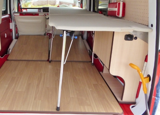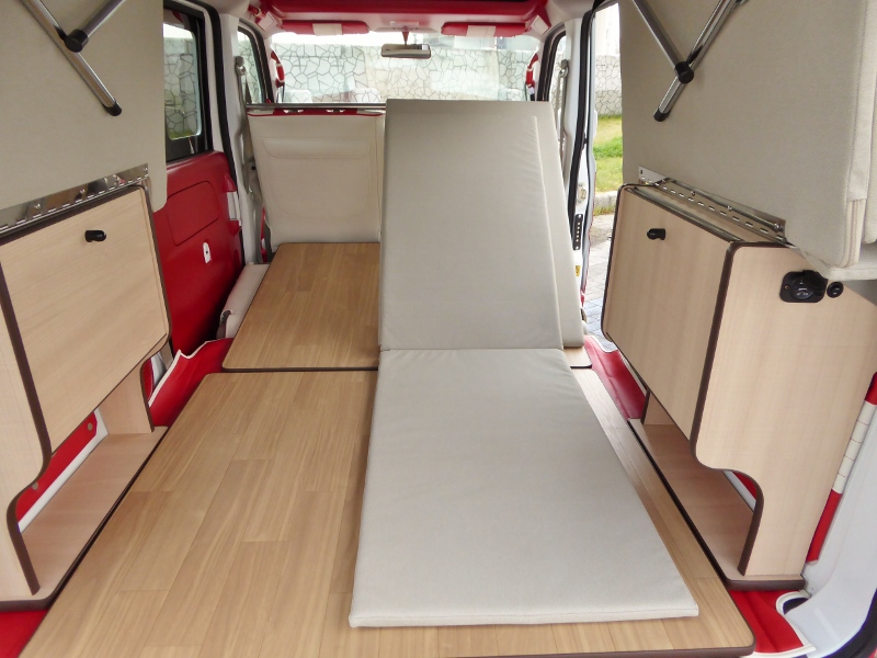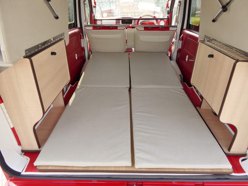 片側2段ベッド、ウッドフローリング、サブバッテリーボックスが標準キットですがオプションで反対側にキットを付ければ4人就寝も可能!