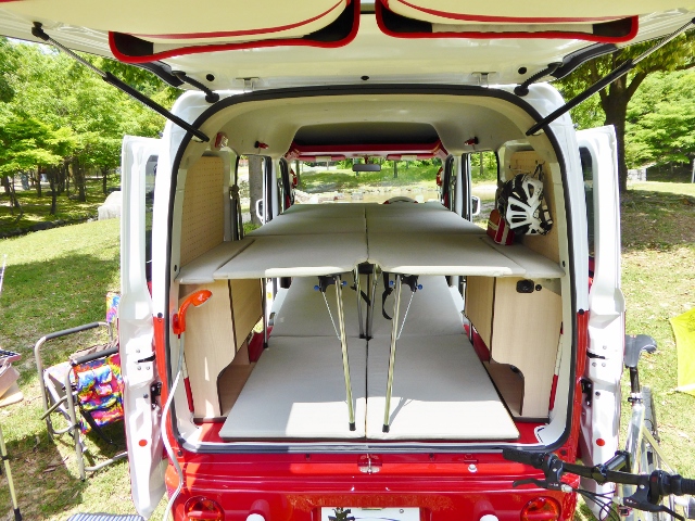 釣り道具、サーフボード、ロードバイク等、片側にタップリ積み込んでも上下で就寝出来ますので色々なシーンで活躍します。