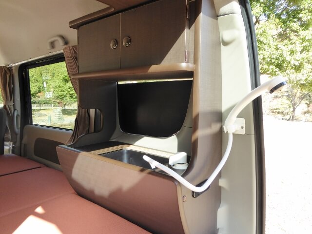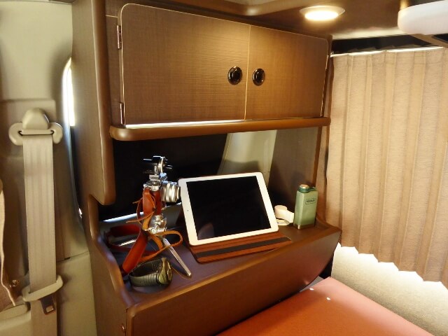車両後方センターにも収納棚があり、 衣類やタオルの収納に活用できます。