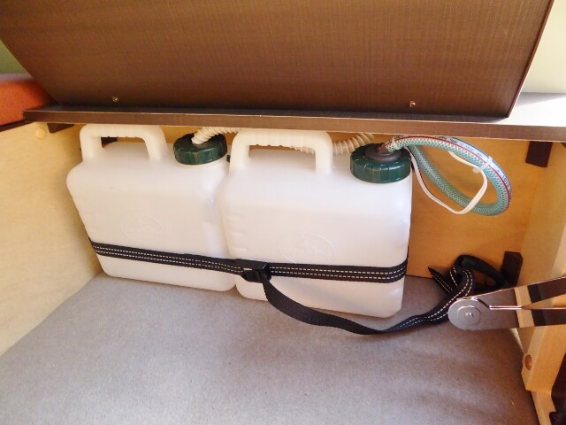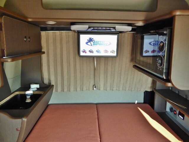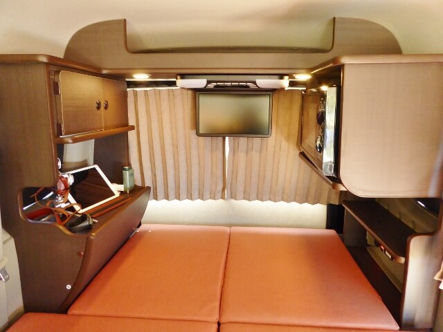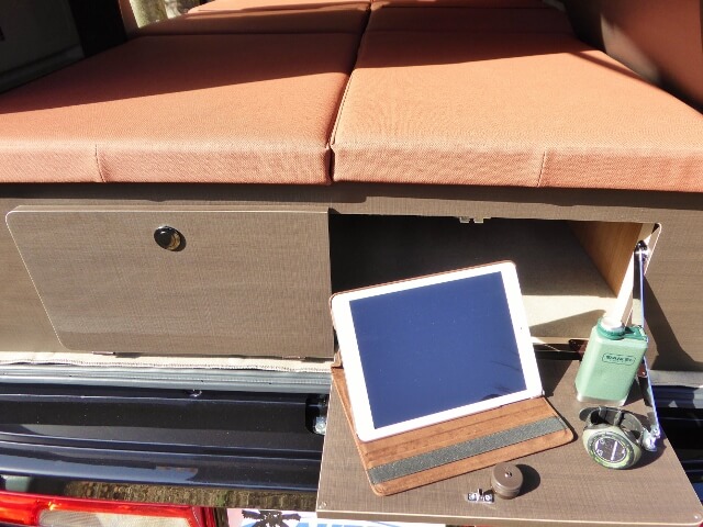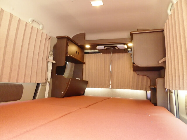 後方の扉を開けるか、 ベッドボードマットを持ち上げることで荷物にアクセスできます。