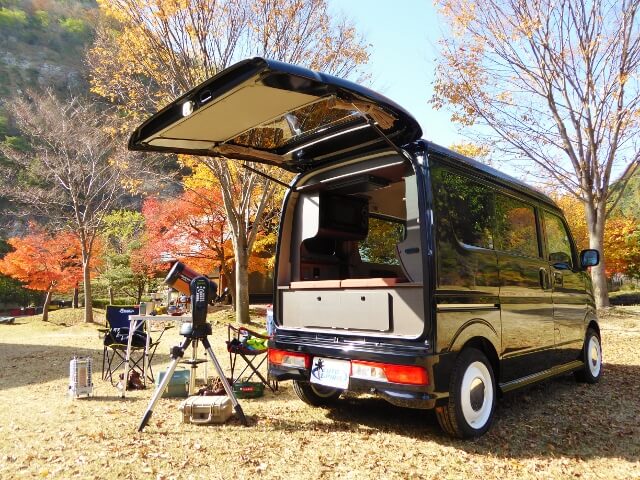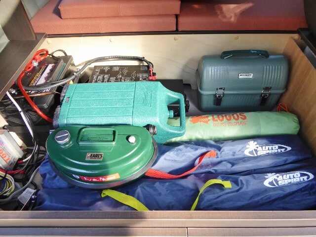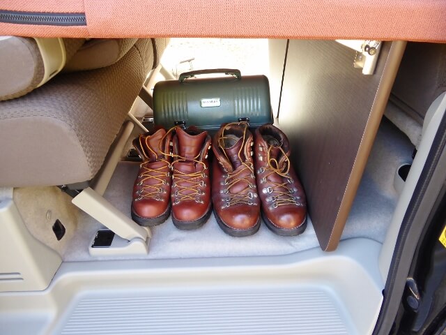 クルマ旅に快適な装備と収納スペースの確保を実現しました!!