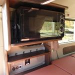 左サイドには電子レンジをセットできる収納棚、 右サイドには大きな収納ボックスが標準装備され、