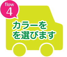 ボディーカラー、内装のシートカバー関係のカラー及びデザイン等を選んで頂きます。