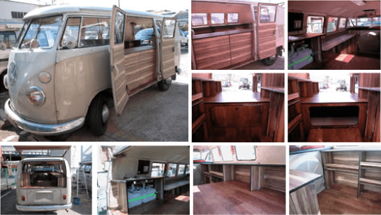 ワーゲンバス仕様(VWバス)やフレンチバス仕様の内装をキャンピング仕様にしたり、