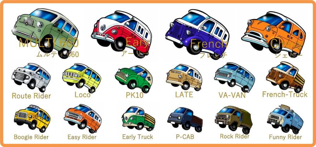 ダイハツ ハイゼット、アトレー、ホンダ バモス、アクティ、日産クリッパー、など